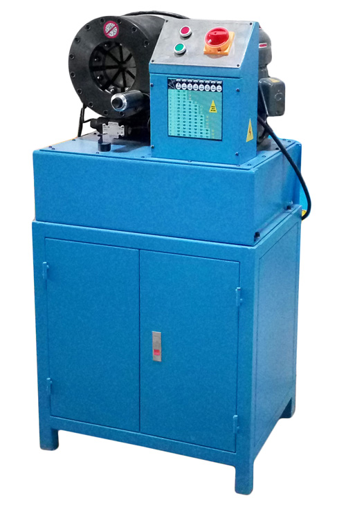 KYJ-201 套筒液壓扣壓機,該機是參照進(jìn)口同類機器,結(jié)合發(fā)熱管的需要而設(shè)計、制造的。扣壓機構(gòu)通過液壓站的活塞桿帶動,沿中心方向收縮扣壓。模具裝在扣壓機構(gòu)的內(nèi)圓上,可快速更換模具的規(guī)格,機器尾部裝有長度限位裝置,可調(diào)整工件的扣壓位置。