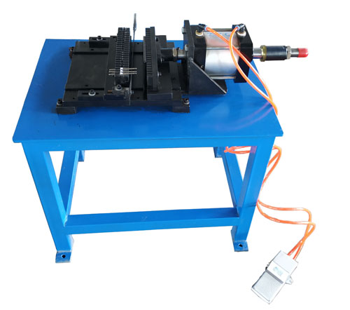 YZJ-201 簡(jiǎn)易氣動(dòng)型臥式膠粒壓裝機(jī),是利用氣缸的動(dòng)力,將引出棒和下端封口膠塞排列在定位槽內(nèi),踩下腳踏閥或采用電控按鈕開(kāi)關(guān)控制,引出棒便自動(dòng)壓裝入下端封口塞。每次操作12-36套,由客戶根據(jù)自身的產(chǎn)品而定位數(shù)。這種機(jī)器是一種簡(jiǎn)易操作的機(jī)器,上料、下料是手工操作;此操作勞動(dòng)強(qiáng)度低,生產(chǎn)效率高,熟手后班產(chǎn)在15000-20000/套區(qū)間內(nèi)。