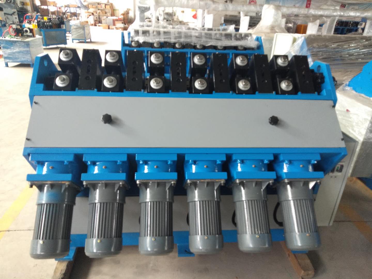 此款機(jī)器主要是針對(duì)“通用型”縮管機(jī)單軸傳動(dòng),容易損壞電機(jī)的不足,增加了1對(duì)過(guò)橋雙軸齒輪,中間用雙萬(wàn)向軸連接電機(jī)與軋輥軸,使機(jī)器平行傳動(dòng),扭距增大,從而減少電機(jī)與軋輥軸的直接受力,起到保護(hù)作用。